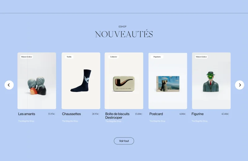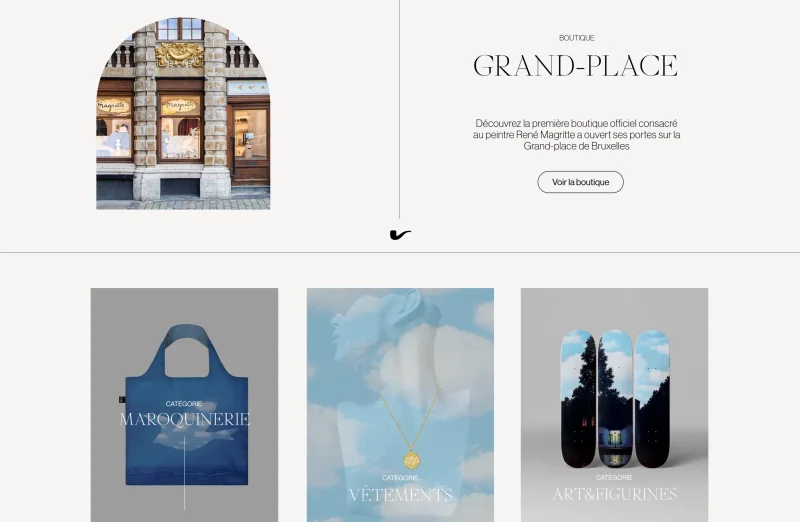 The Magritte Shop is the boutique entirely dedicated to the world of the famous Belgian painter René Magritte. Housed in the heart of Brussels' Grand-Place, The Magritte Shop plunges you into the painter's world, an immersive experience, a surreal decor inspired straight from Magritte's universe.