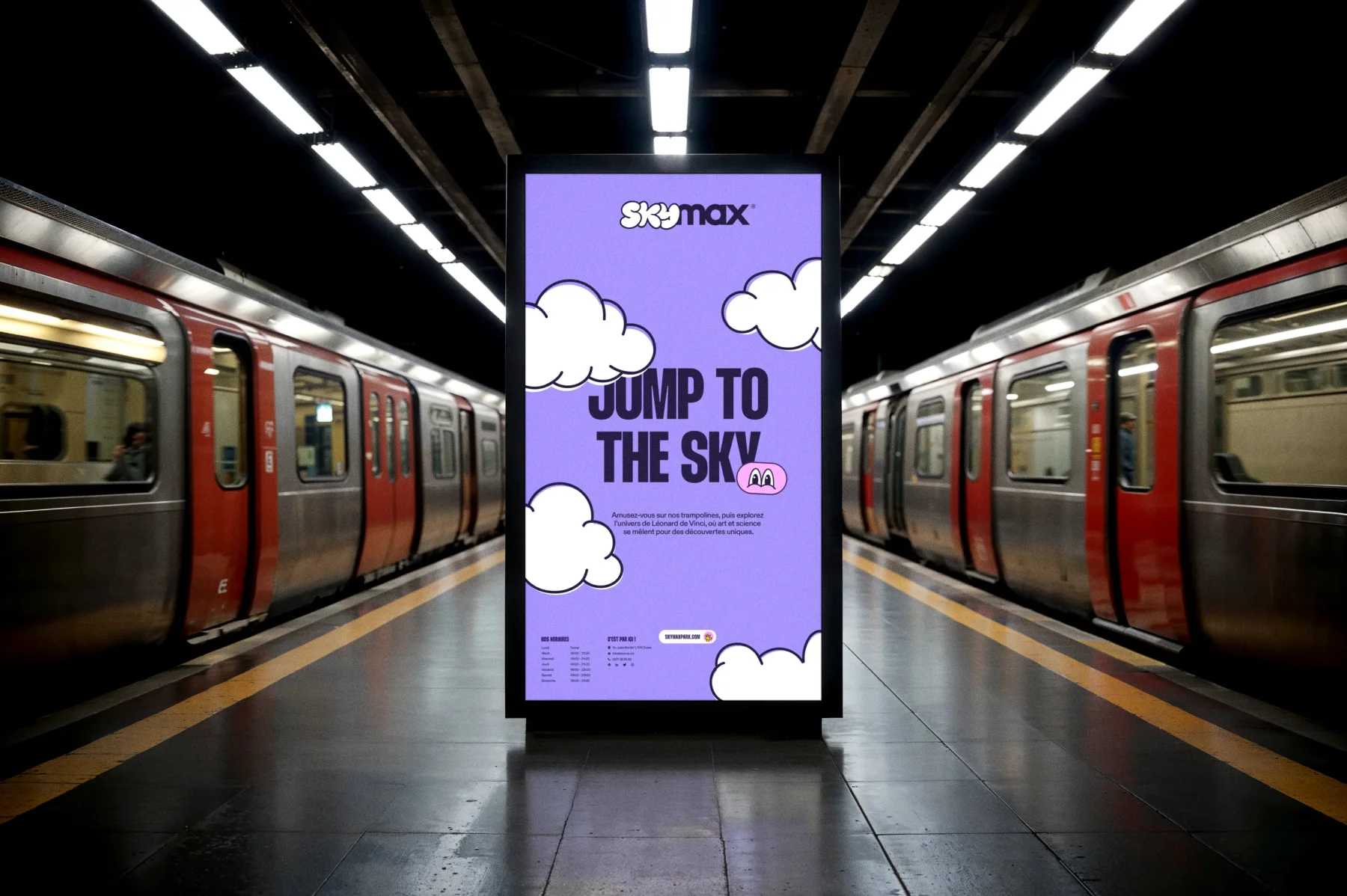 For Skymax, we took the opposite approach. Rather than follow this saturated trend, we proposed a cartoon-inspired graphic universe, closer to the spirit of The Simpsons: colorful, fun, accessible to all generations. An artistic choice that allows the park to stand out, remain memorable and create a warmer, more inclusive atmosphere.