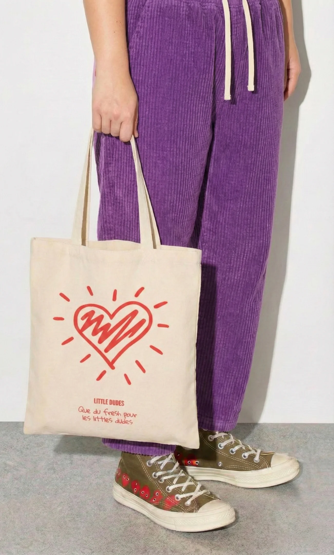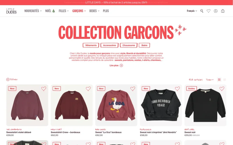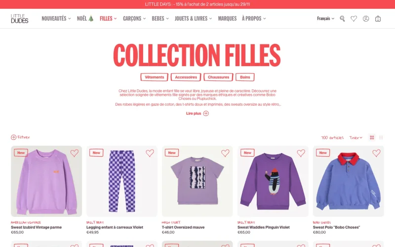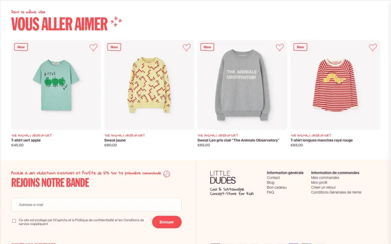 Le style dessiné, imparfait et joyeux renforce le côté "fun" et "coloré" de la marque, créant une résonance positive avec l'univers de l'enfant. Cette approche graphique rend également les engagements sérieux (comme l'éthique et la durabilité) plus accessibles, incarnant la volonté de Little Dudes d'une mode responsable sans greenwashing.