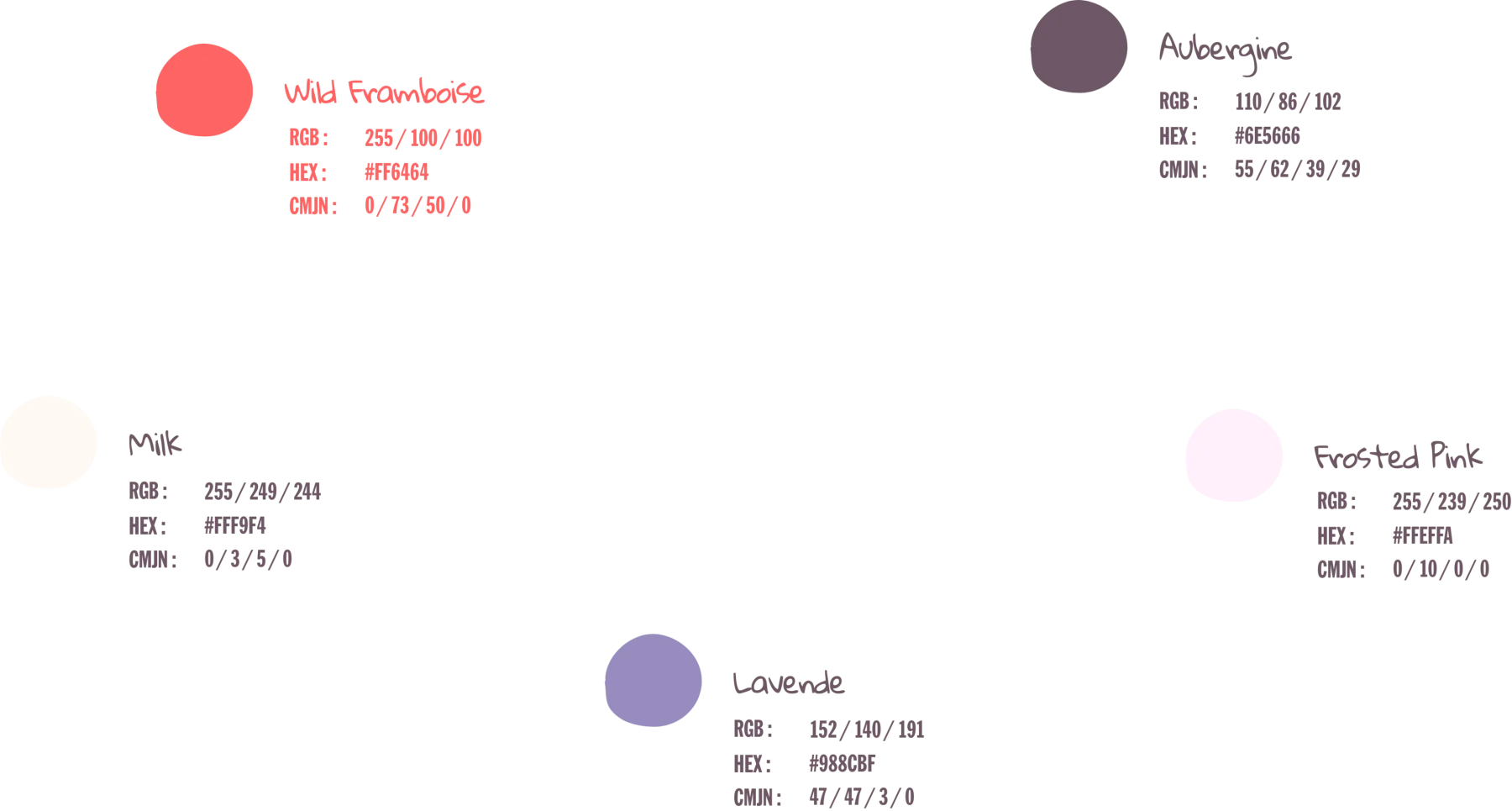 Notre choix s’est basé sur un équilibre stratégique entre énergie et engagement. Le Corail vif incarne le côté fun et audacieux des collections. Le Rose pâle apporte la douceur des matières naturelles et de l'univers enfantin. Enfin, le Violet offre un contraste sophistiqué, ancrant le design dans une esthétique premium pour s'adresser aux parents.